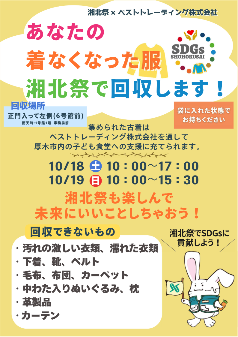 10/18(土) 10/19(日) 湘北祭で古着回収いたします。