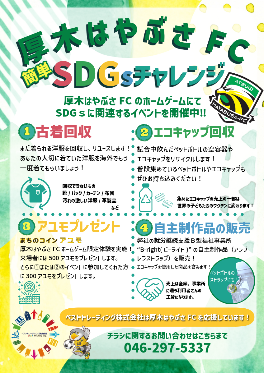 ベストトレーディング株式会社は今期から厚木はやぶさFCのスポンサーとなり、地元サッカーチームの支援を通して地域に貢献していきます。