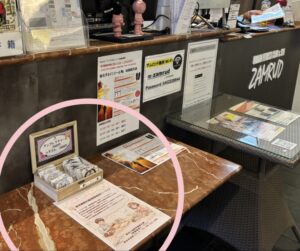 アンブレラストラップやヘアゴムをザムロッド様の受付横で販売しているのでぜひお立ち寄りください。