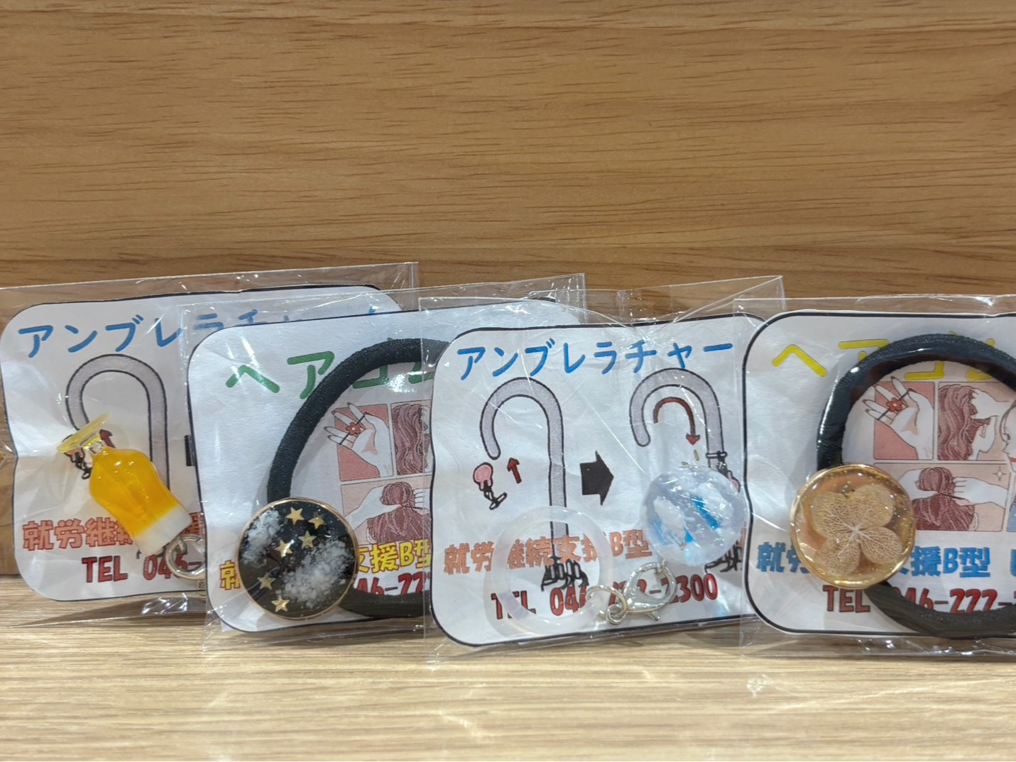 アンブレラストラップやヘアゴムをザムロッド様の受付横で販売しているのでぜひお立ち寄りください。
